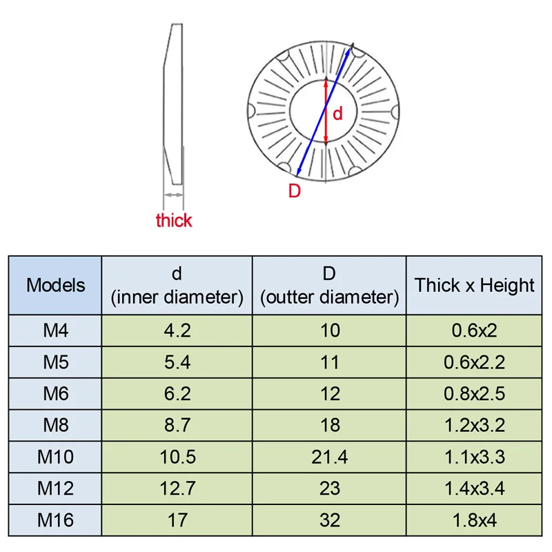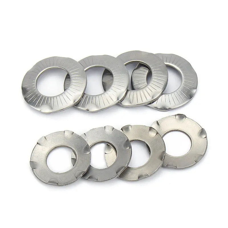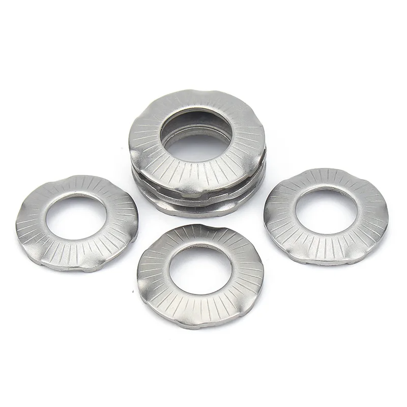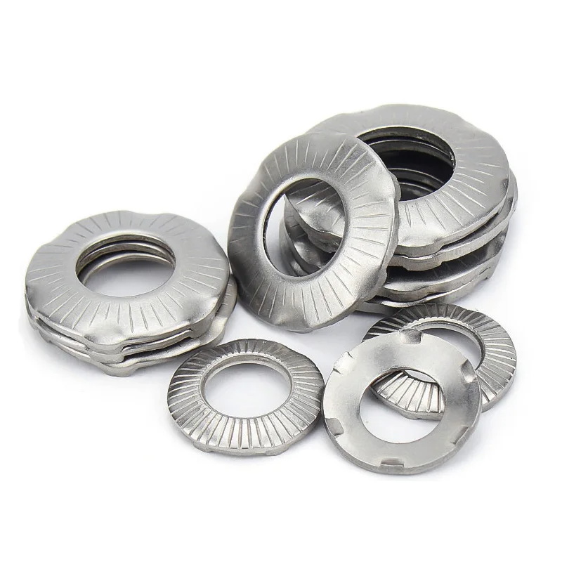 接触ワッシャー。ねじの下頭との接触面には緩みにくい丸いローレット加工が施され、支持フィールドとの接触面には一連の歯があり、締め付け中にワッシャーが回転することはありません。