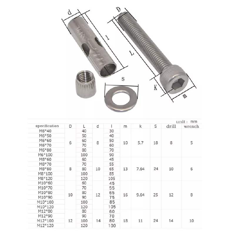 | 안건 | 스테인레스 스틸 슬리브 앵커 볼트 콘크리트 슬리브 앵커 | |
