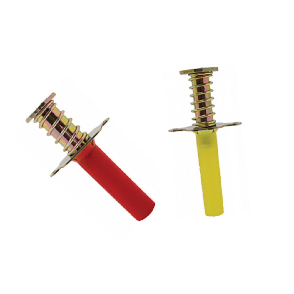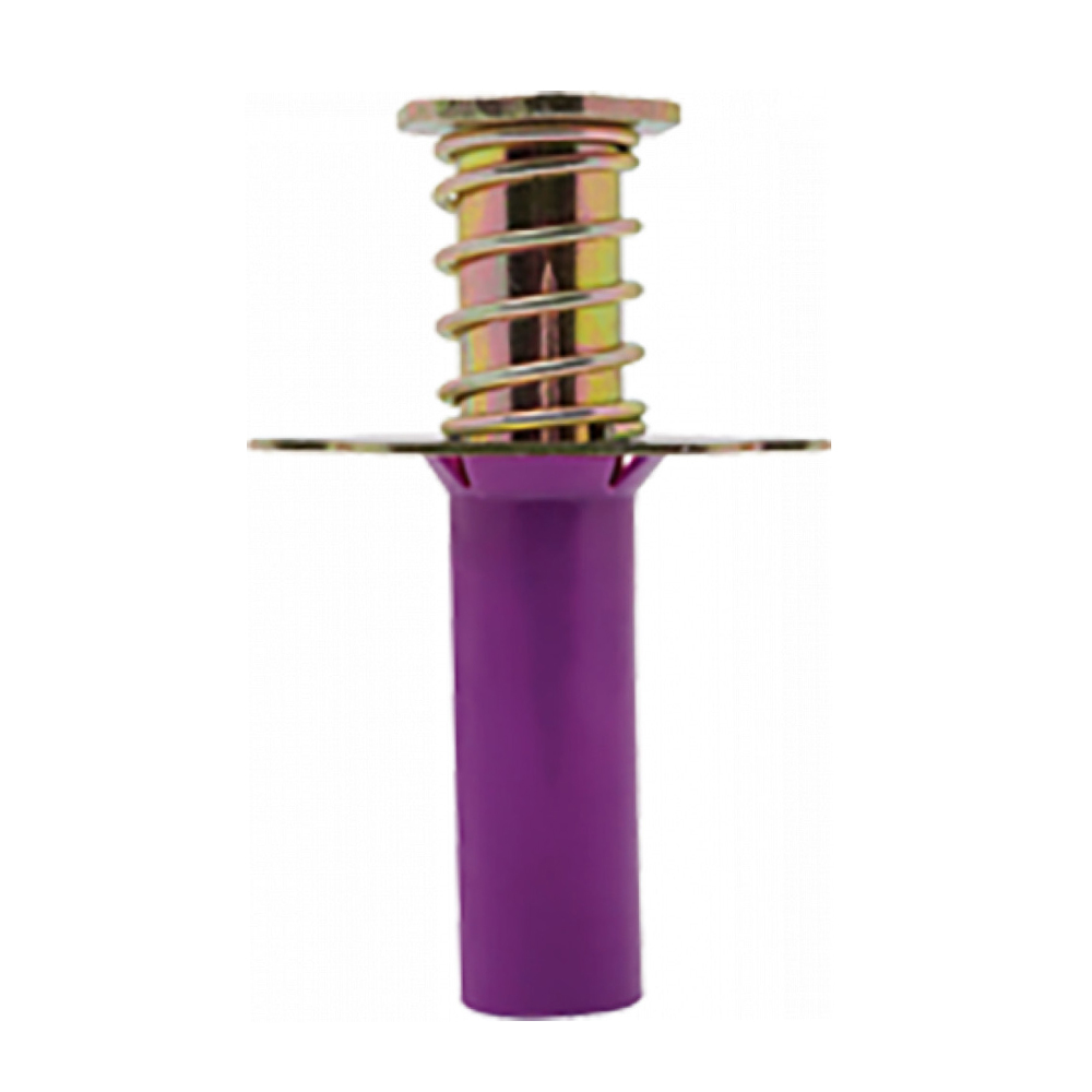 Inserts can be installed in upper and lower steel deck profiles with limited concrete topping thickness. Concrete inserts are designed for installation in and through composite steel deck (i.e. “pan-deck”) used to support newly poured concrete floors or roof slabs. After installation, the protective sleeve of the insert protrudes below the surface of the deck. The sleeves are color-coded by size and allow overhead attachment of steel threaded rod in sizes ranging from 1/4 to 3/4 in diameter. The sleeve prevents sprayed fireproofing material and acoustical dampening products from clogging the internal threads of the insert. It also prevents burying, masking or losing the insert location. A hex impact plate offers resistance to rotation within the concrete as a steel threaded rod is being installed.