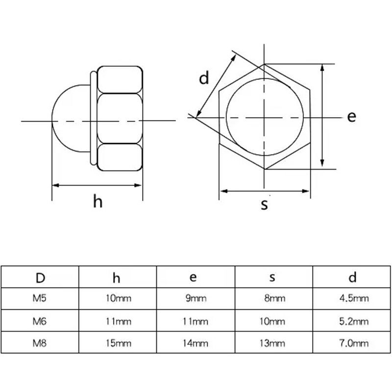 Item | M5-M10 Stainless steel white plastic cap self-lock acron nut nylon self-insert locking nuts suppliers | |||||||