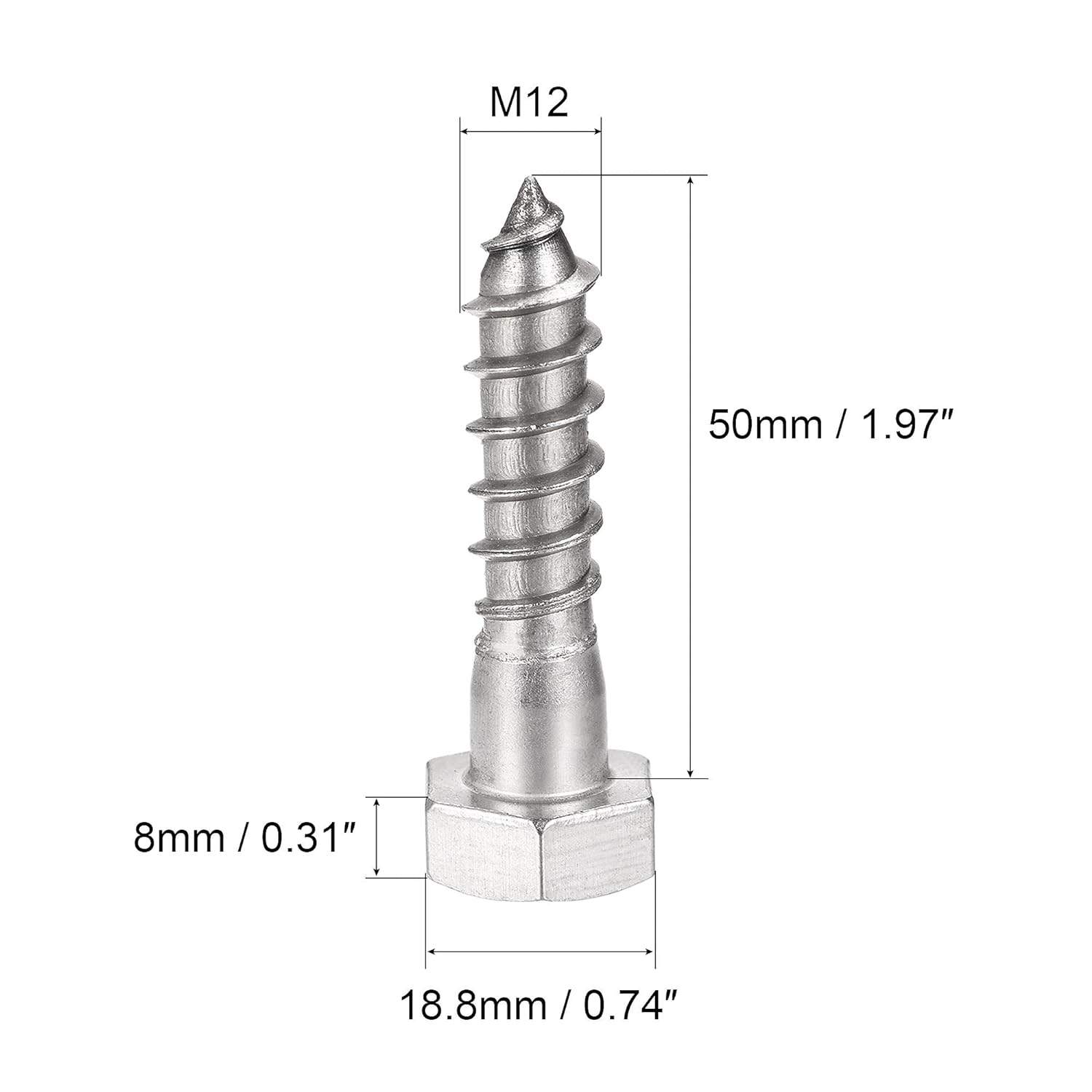 Specification : Model: M12x50mm; Thread Specification: M12; Material: 304 Stainless Steel; Color: Silver Tone; Screw Length: 50mm/1.97"; Screw Cap Thickness: 8mm/0.31"; External Hex Dia.: 18.8mm/0.74"
