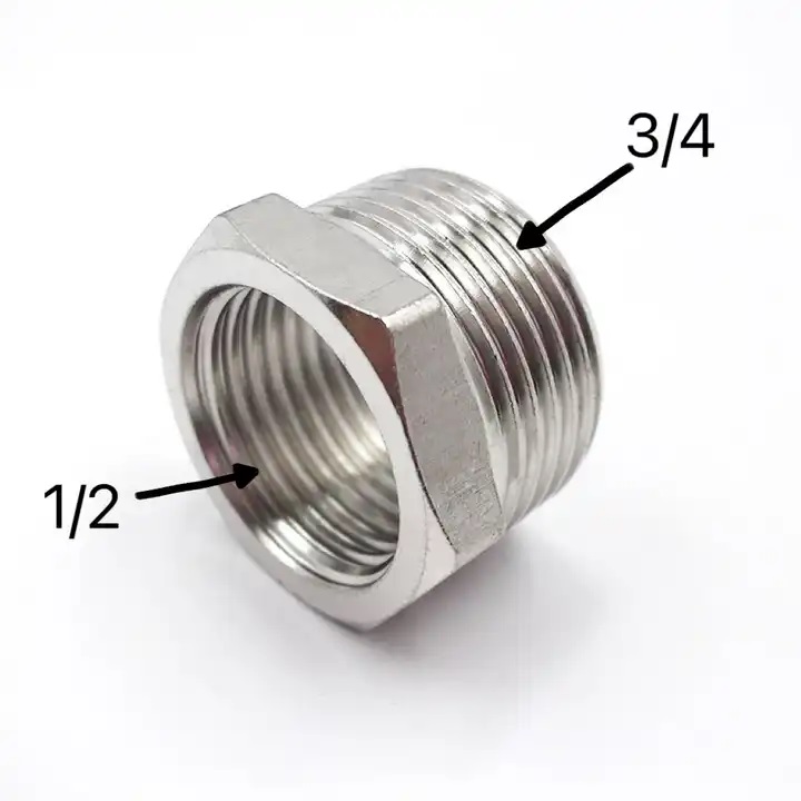 Item | Stainless Steel Reducer Hex Bushing, 1" Male NPT to 3/4" Female NPT, Reducing Cast Pipe Adapter Fitting | |||