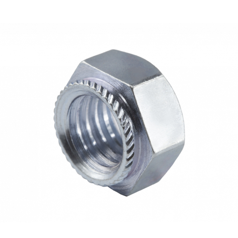 Weld nut and clinch nut can be installed into dissimilar metals as thin as 0.20mm and are flush on the opposite side. The clinch fasteners can be installed in-die, something that you cannot do with welding. Welding causes spatter and environmental concerns that are not an issue with self-clinching fasteners.