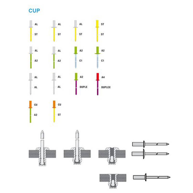 Material | (1)RIVET BODY :Copper; (2)MANDREL:Stainless steel. | |||||||