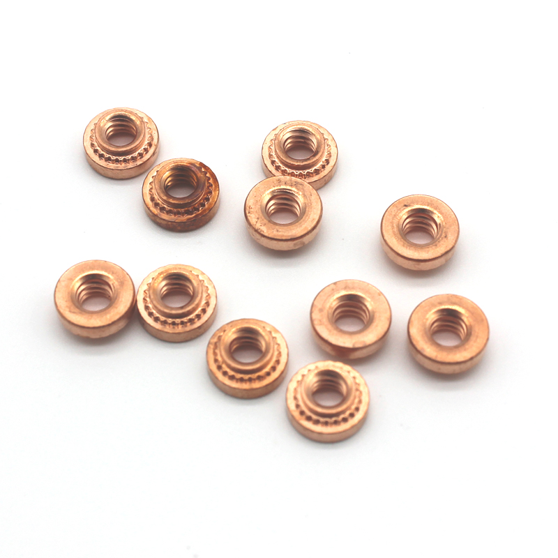 Self-clinching nuts are smaller than rivet nuts, and internally threaded nuts that are pressed into the base material. The advantages of using a clinch nut over a rivet nut are: Can be installed in very thick base material.