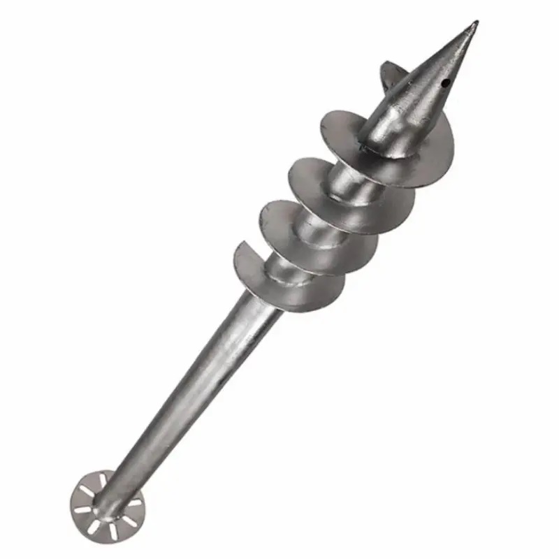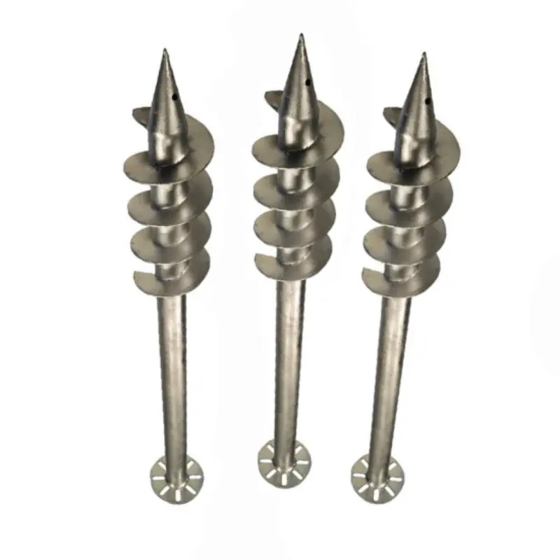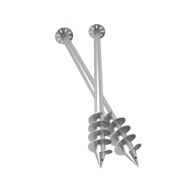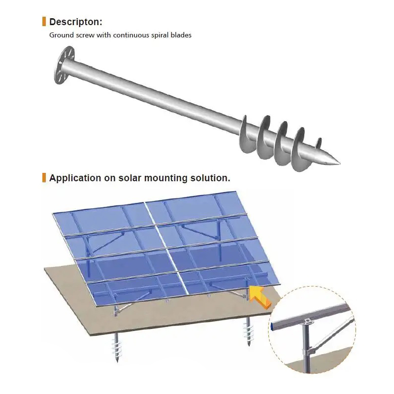 The spiral pile is one of the most commonly used foundation piles in photovoltaic ground fixed power stations. It is composed of a central steel tube connected with several spiral blades. According to the layout of blades, it can be generally divided into layered vane spiral pile and continuous vane spiral pile. Spiral piles are generally constructed with professional machinery. A spiral pile can be completed in a few seconds, and the pile foundation can be used immediately after construction. There is no construction and maintenance problem of concrete and labor cost consumption is saved. And the construction equipment has strong mobility, fast entry and exit cost is low, this pile type tensile strength is high, suitable for all kinds of land, hills, shoals and other terrain.
