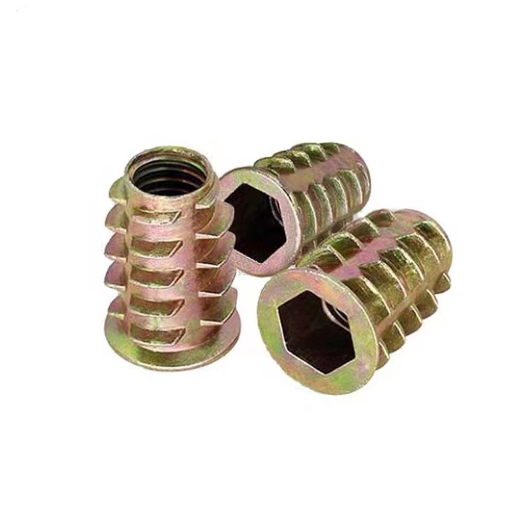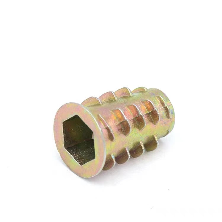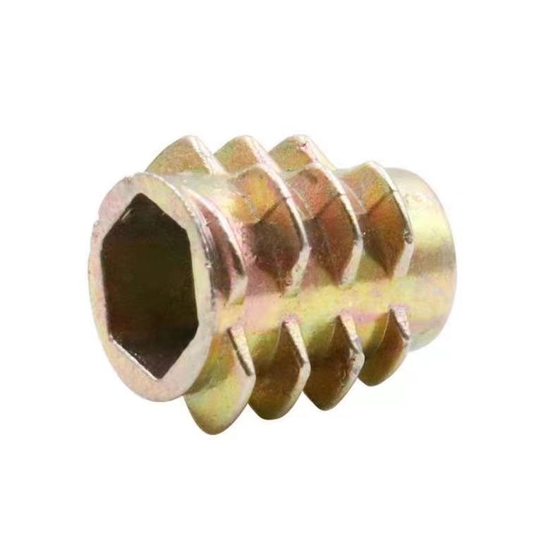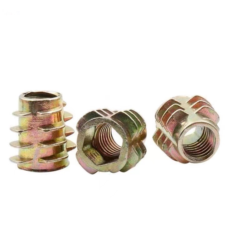 Item | Zinc alloy material insert nut type D and type E yellow zinc plated for furniture | |||||||