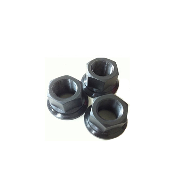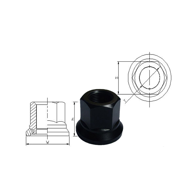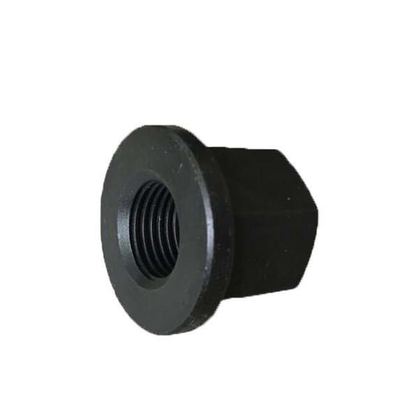 Hex flange nut mainly comprises a nut body, one end of the nut body is fixed with flange, the other end of the nut body is fixed with a cap,As a result of the nut body is set on the cap, so in the use of hexagonal flange nut has a good sealing, can effectively prevent rain, moisture, dust and other harmful substances immersed in the nut body, prevent corrosion phenomenon of the nut body, thus can greatly extend the service life of hexagonal flange nut.