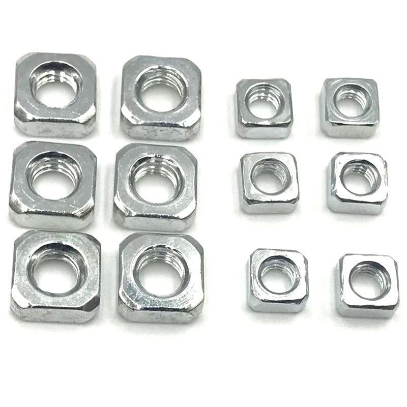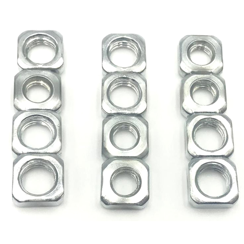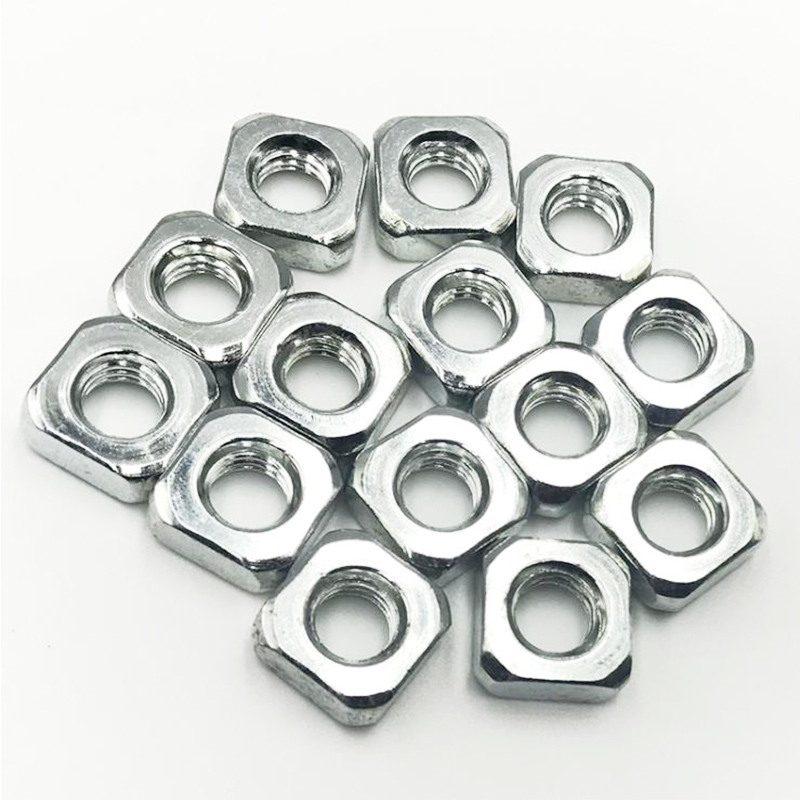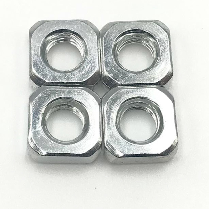 The shape of square nut is square so it also can be called square nut, the standard is DIN557 and material is divided into carbon steel and stainless steel. Square nut is one of the welding nuts which use high temperature to melt some metal welding in the middle of the two products play a fastening role, so the fastening effect of the connection will be better and not easy to loose, it also can be used with bolts together. Square nuts are mainly used in power engineering, traffic engineering, home building materials and other industries.