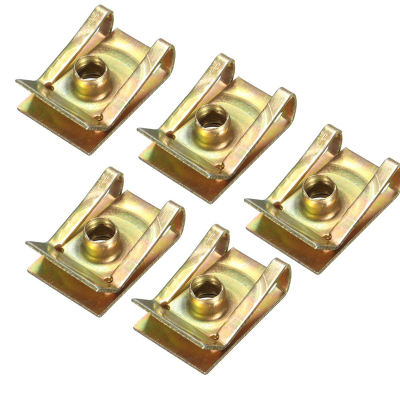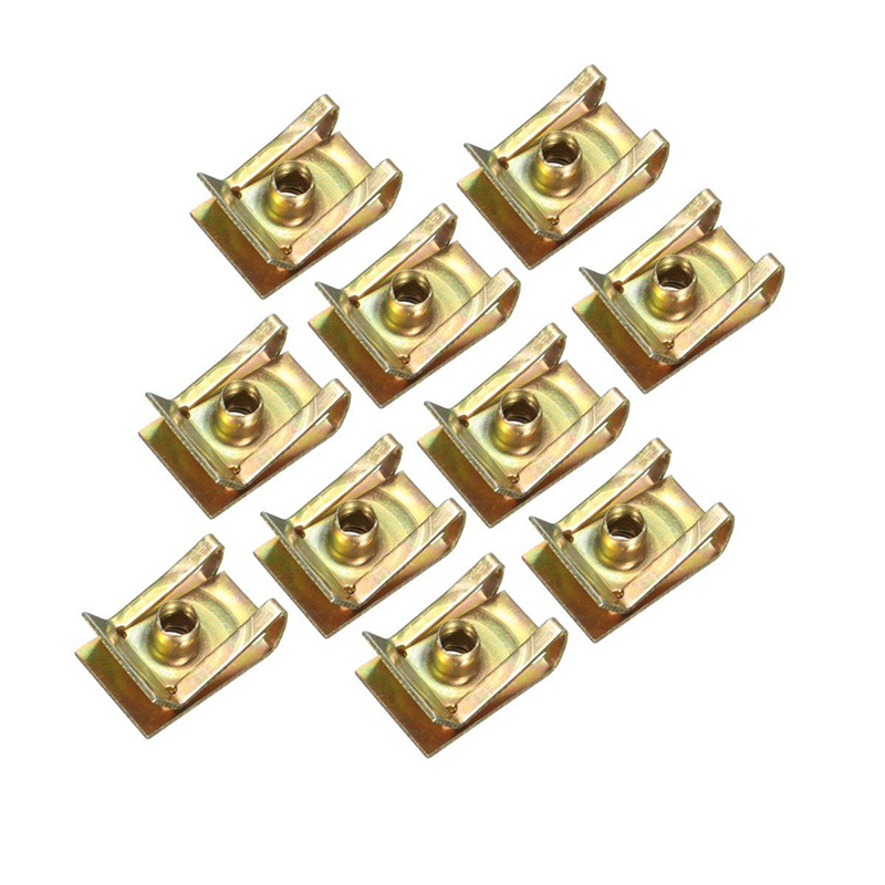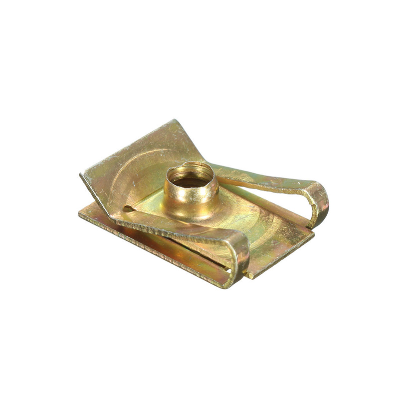 U nut or Clip nut,also known as a sheet metal nut or a speed nut,it is a type of nut designed to be clipped to sheet metal.It is a type of captive nut commonly made as as cage nut.They come in many forms based upon where they clip on,shape,and type of thread.Each clip nut is designed for only a small range of sheet metal gauges.The clips nuts can be used to clamp panels together,retain cables and insulation or to provide a spring catch.They are an economical and easily reusable fastening which requires no tools.They are typically made from spring steel,but are also available in stainless steel,cooper and bronze.