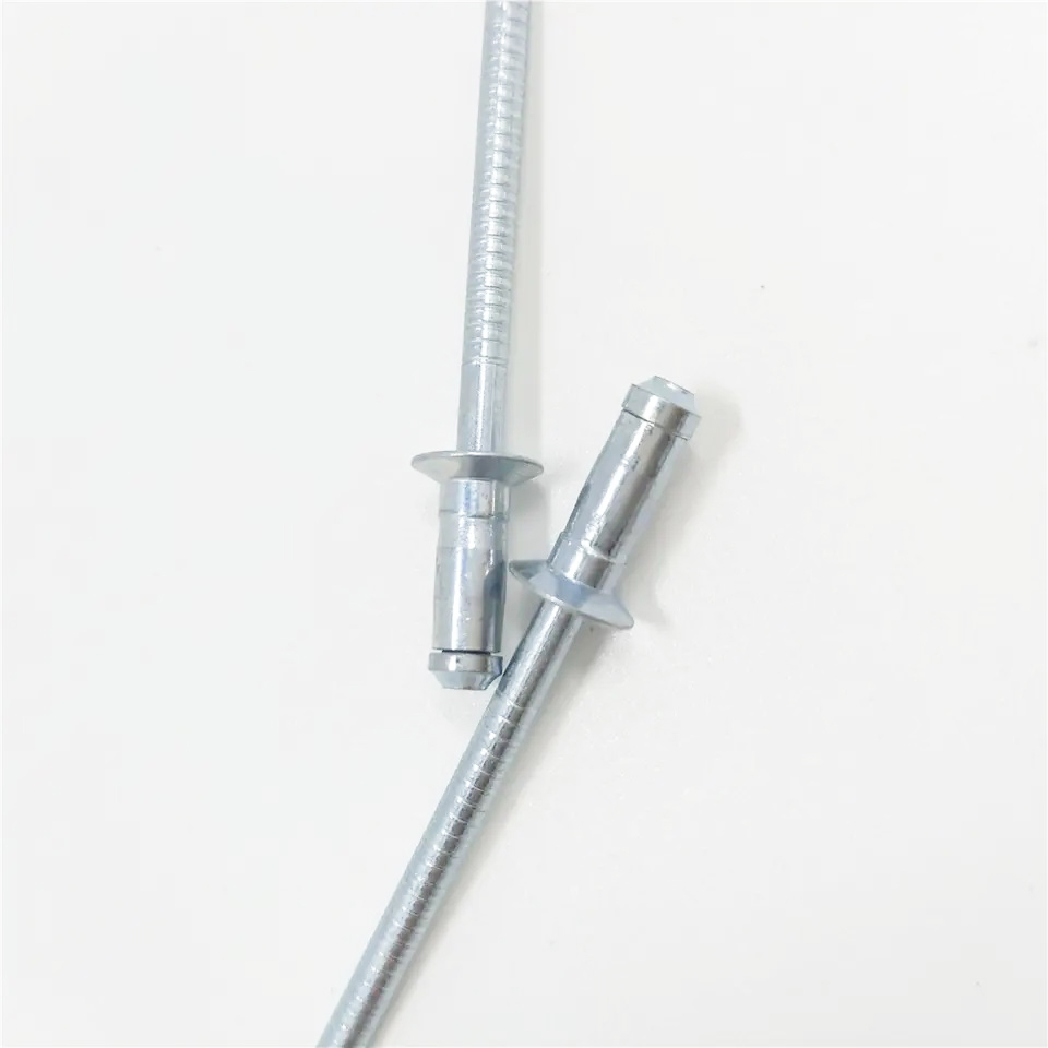 Multi-grip blind rivet is a kind of high strength core pulling fastener which can show several multi - drum tails after installation. After installation, the end of the rivet body will be pulled into a multi-drum rivet head, so it can clamp the two riveted structural parts and will reduce the pressure on the surface of the structural parts ,it is belongs to high strength fasteners with the role of seismic and decompression. Multi-grip blind rivet is widely used in communication, transportation, industry, aerospace, aviation, automobile, electronics, electrical, industry, medical, construction, packaging and many other fields.