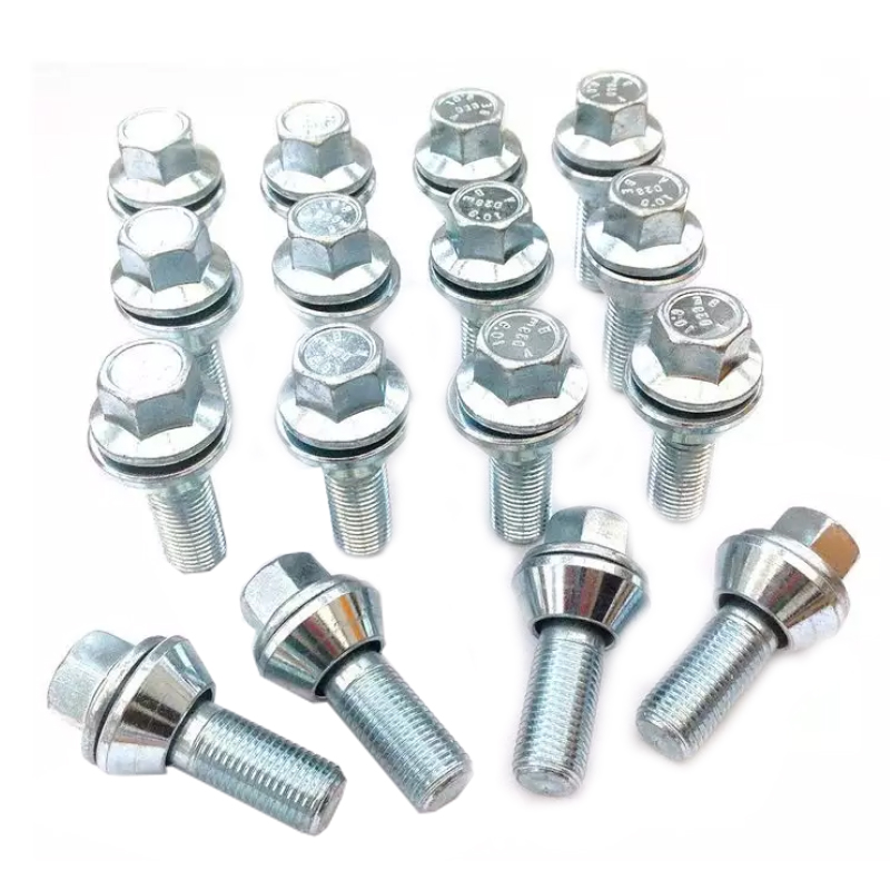 Car wheel bolts are high strength bolts used to connect vehicle wheels. The connection position is the hub unit bearing of the wheel. The general miniature car is 10.9 grade, and the large and medium-sized vehicle is 12.9 grade. The structure of car wheel bolts is generally a knicks file and thread file.Car wheel bolts are mostly of grade 8.8 or above, which are responsible for the large torque connection between the hub and axle of the automobile. Double-head hub bolts are mostly of grade 4.8 or above, which are responsible for the connection of lighter torque between the outer hub shell of the automobile and the tire.