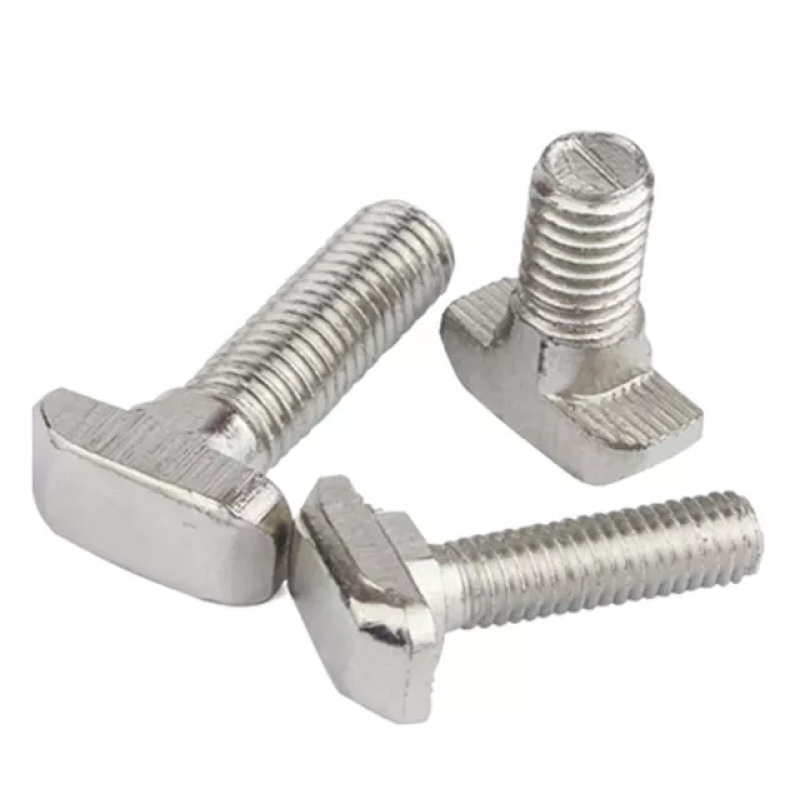 T-bolt can be directly put into the aluminum profile slot, in the installation process, it can automatically position and lock, often used with flange nuts, is the installation of angle parts of the standard matching fittings, according to the profile slot width and different series of profiles to choose the use,It divided into carbon steel bolts and stainless steel bolts according to the material.