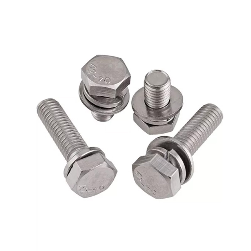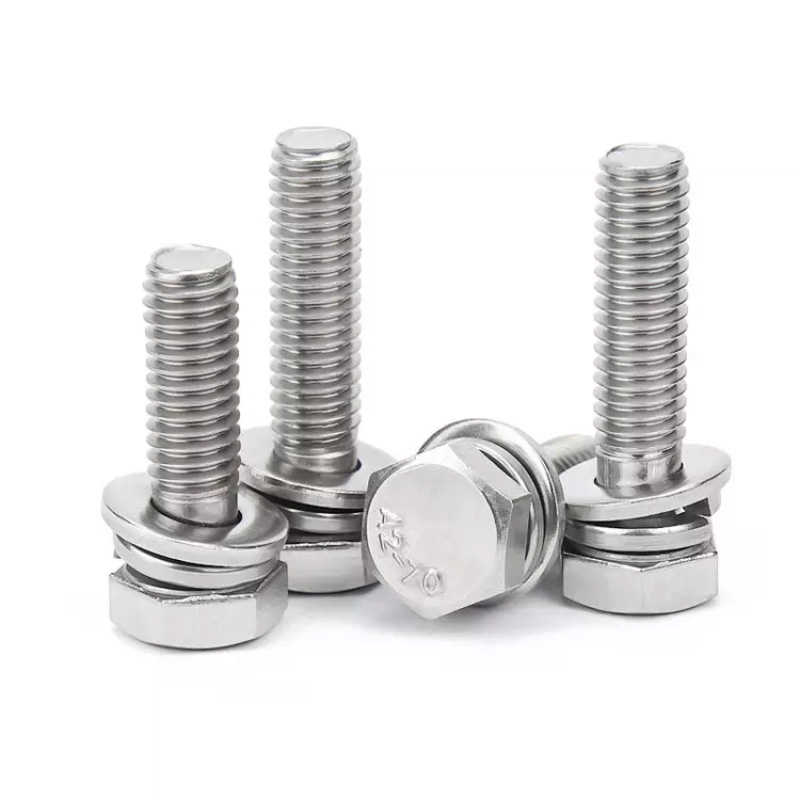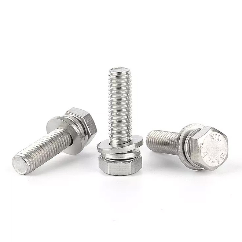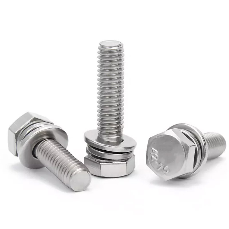 In terms of appearance, the combination screw has one more elastic pad or flat pad than the ordinary screw. This kind of combination screw is called two combination screws, and some have more elastic pad and flat pad. This kind of combination screw is three combination screws. The elastic pad and flat pad are installed before rubbing teeth, and the diameter of the washer after rubbing teeth is smaller than the tooth diameter. Therefore, the elastic pad and flat pad cannot be removed and combined with screws to form an assembly, which is the combination screw. Combination screws are mostly used for the connection between thin metal plates. When connecting, first make a threaded bottom hole for the connected part, and then screw the combined screw into the threaded bottom hole of the connected part. Due to the high hardness of the threaded surface of the combined screw, the internal thread can be tapped out in the threaded bottom hole of the connected part to form a connection. The purpose of cross recessed combination screw, hexagon head bolt combination screw and self tapping combination screw is the same as that of corresponding cross recessed screw, hexagon head bolt and self tapping screw. The main feature of these combination screws is that they are equipped with corresponding washers, which is very convenient to use.