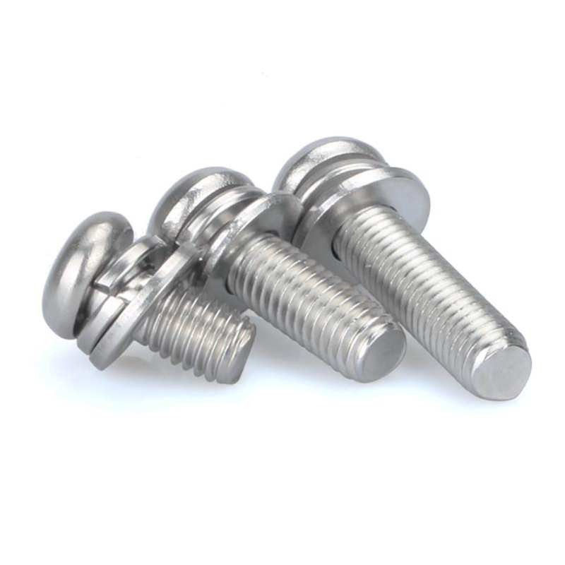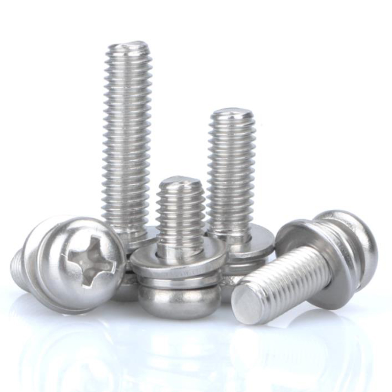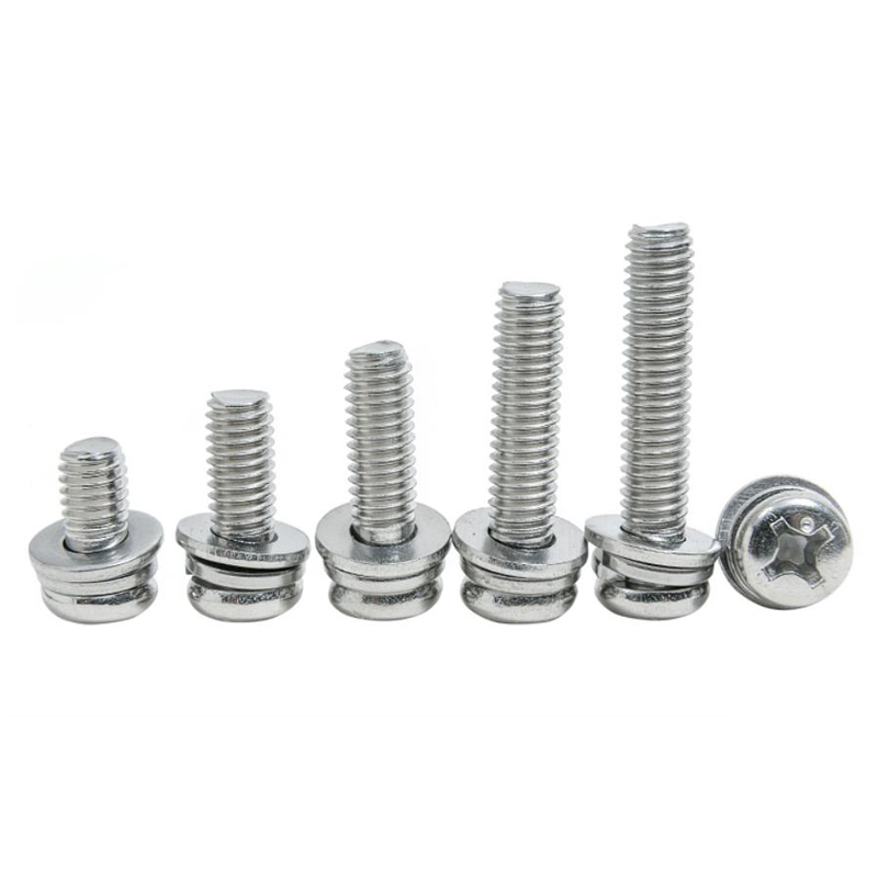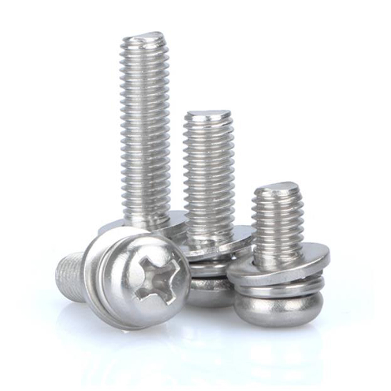 In terms of appearance, the combination screw has one more elastic pad or flat pad than the ordinary screw. This kind of combination screw is called two combination screws, and some have more elastic pad and flat pad. This kind of combination screw is three combination screws. The elastic pad and flat pad are installed before rubbing teeth, and the diameter of the washer after rubbing teeth is smaller than the tooth diameter. Therefore, the elastic pad and flat pad cannot be removed and combined with screws to form an assembly, which is the combination screw. Combination screws are mostly used for the connection between thin metal plates. When connecting, first make a threaded bottom hole for the connected part, and then screw the combined screw into the threaded bottom hole of the connected part. Due to the high hardness of the threaded surface of the combined screw, the internal thread can be tapped out in the threaded bottom hole of the connected part to form a connection. The purpose of cross recessed combination screw, hexagon head bolt combination screw and self tapping combination screw is the same as that of corresponding cross recessed screw, hexagon head bolt and self tapping screw. The main feature of these combination screws is that they are equipped with corresponding washers, which is very convenient to use.