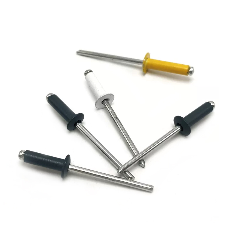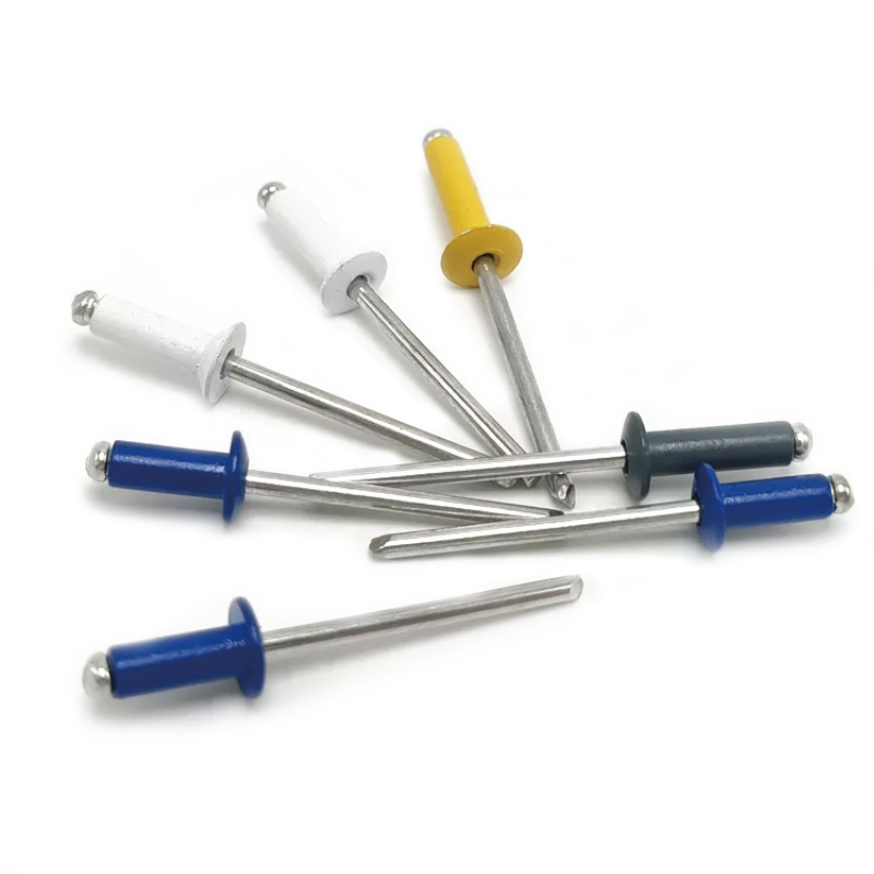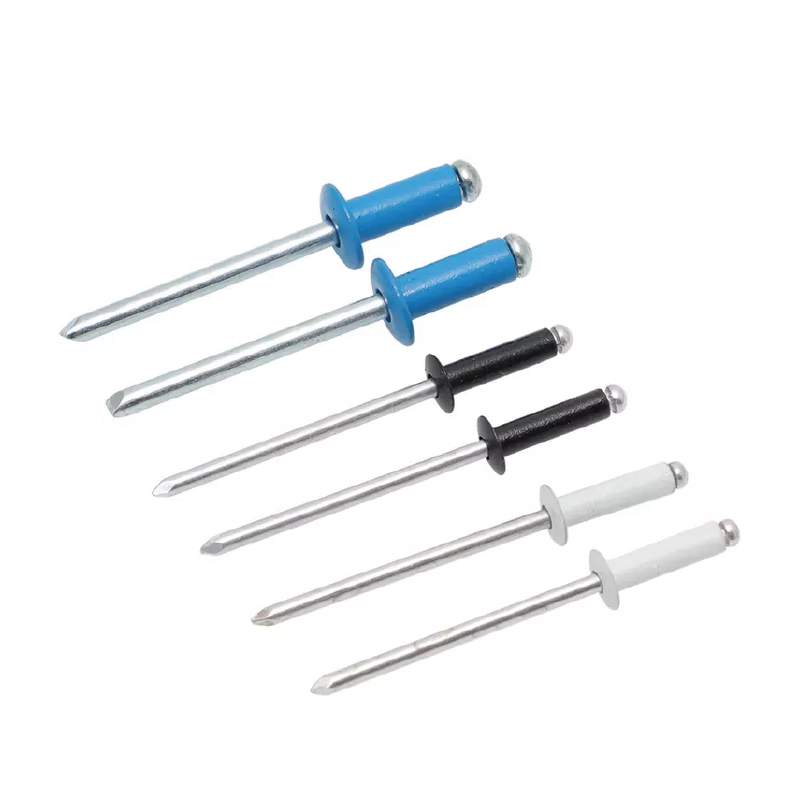 Color blind rivet is use international advanced equipment to color. The appearance is evenly colored and beautiful with features of heat and acid resistance ,non-discoloration. Suitable for riveting with the same color of the joint: such as furniture, household appliances, bags, aluminum plastic board, decoration decoration, etc. Color blind rivets have open end blind type, closed end blind type, unigrip blind type, Multi-grip blind type, tri-firm blind type and etc. The material is aluminum, steel, stainless steel and etc, all of them can be painted as black, blue, white, red, bronze, brown, yellow, silver and so on according to client's requirements.