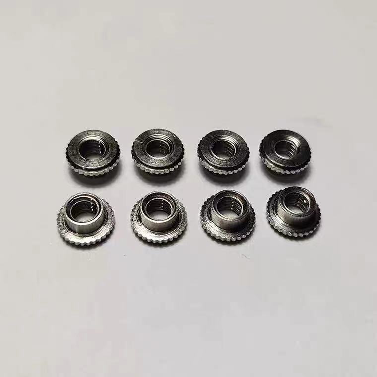 Самозажимные миниатюрные гайки обеспечивают прочную внутреннюю резьбу многократного использования в панелях, которые слишком тонкие, чтобы их можно было нарезать обычной резьбой, где пространство ограничено или требуется установка очень близко к краю. Благодаря использованию специальной проверенной функции зажима в сочетании с буртиком с радиальной накаткой этот крепеж имеет превосходные характеристики крутящего момента и выталкивания, обеспечивая при этом заподлицо нижнюю сторону панели. Доступен в версиях без запирания и с запиранием, версия с замком. имеет эллиптически деформированный корпус и сухую пленочную смазку, обеспечивающую преобладающую способность фиксации крутящего момента и ограничение ослабления при вибрации. Как и все самозажимные крепления, они устанавливаются с использованием параллельного сжимающего действия, поэтому требуется доступ к обеим сторонам панели. Миниатюрные клинч-гайки доступны с различными размерами резьбы, изготовлены из нержавеющей стали серии 300 и подходят для установки в панели из пластичной стали и алюминия с рекомендуемой максимальной твердостью 70 HRB.